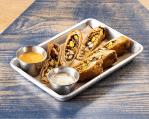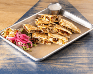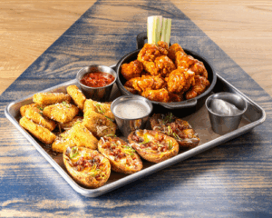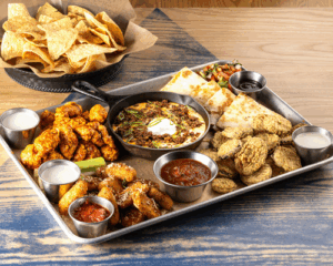 feed the crew with a tray full of food (no substitutions please): hand-battered boneless wings, mozzarella bites, smoked brisket quesadilla, fried pickles and Jack's skillet queso served with crispy tortilla chips