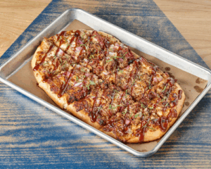 smoked brisket, mozzarella, BBQ sauce, red onion and cilantro
