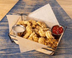 hand-battered shrimp served with fries and choice of house-made cocktail sauce or chipotle ranch